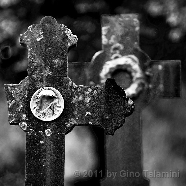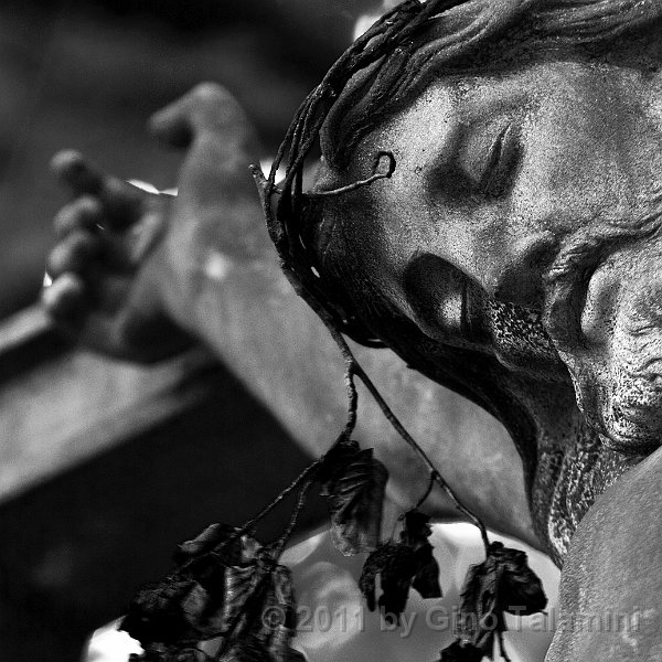 Love written on a tombstone Two decaded crosses on a cemetary Detail of a Jesus Christ statue Detail of a cross on a grave Feet of a statue of Jesus Christ GinoTalamini Mentoraat 5 DSC6162